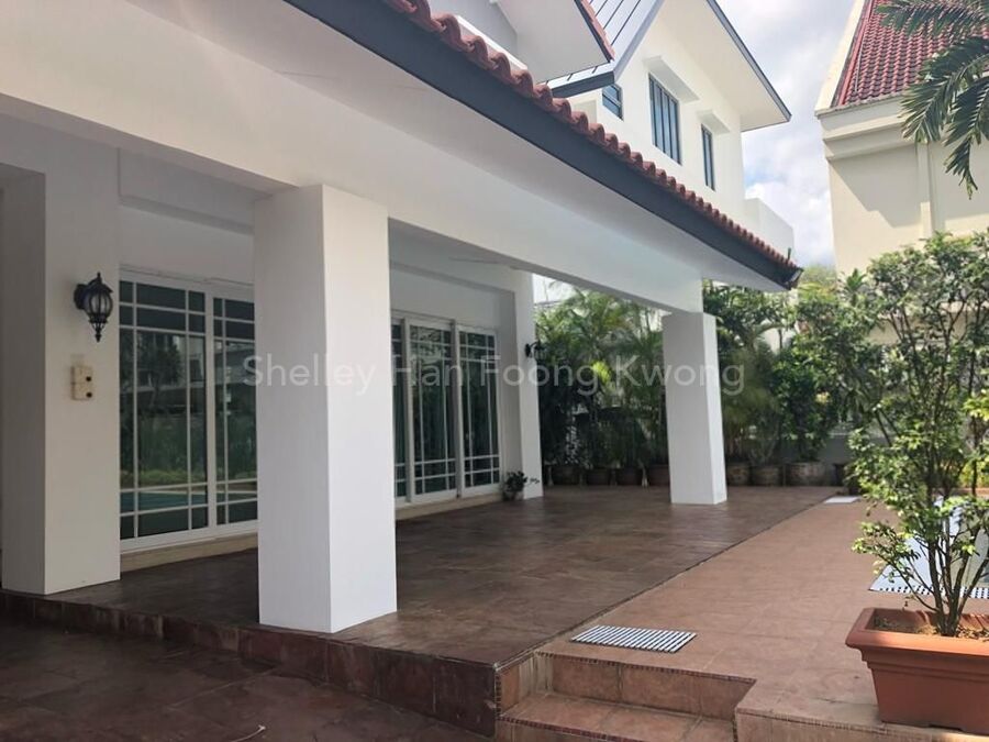 is this beautiful 2 storey house house with a huge patio overlooking the pool and landscape.