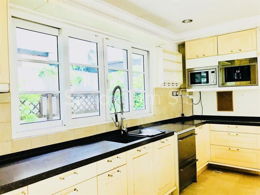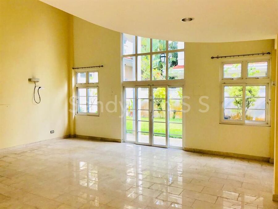 Split-level living and dining hall, bedroom 1 with ensuite bath, a common bath, kitchen with island,maid's room, toilet,Car porch able to park 2 cars