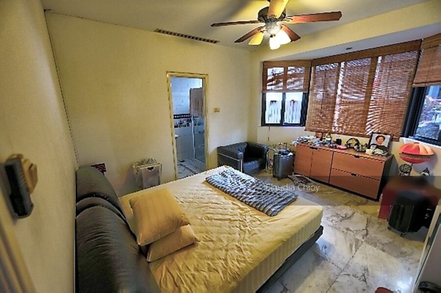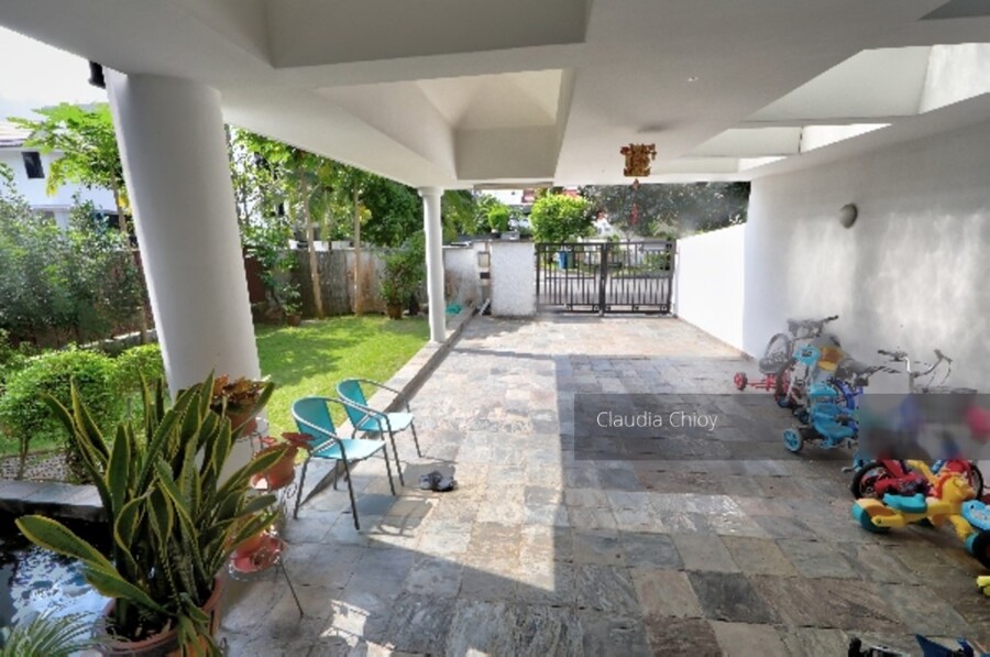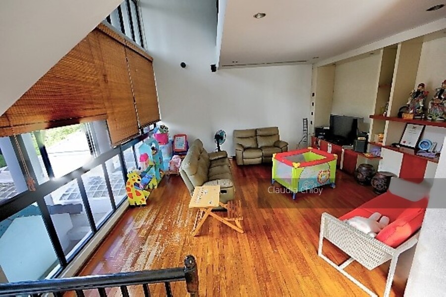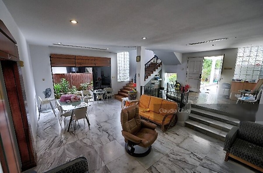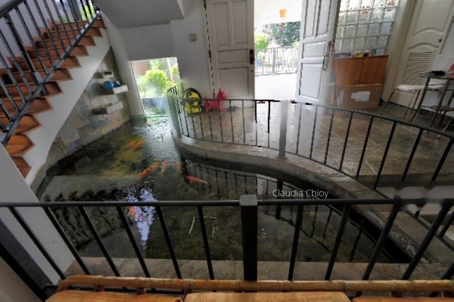 House is in original condition and well maintained. North south facing with main door facing the south thus good cross breeze. It has an unique design that connects the fish pond from the garden area into the house bringing a tranquil and relaxing water flowing sound. The house has a total of 4 bedrooms and 5 bathrooms with a large master bedroom and a double volume family area located on the 2nd floor for family bonding. It has a good sized garden with well maintain flora. It is presently tenanted at S$4000.00 with a 4 months notice to break lease.