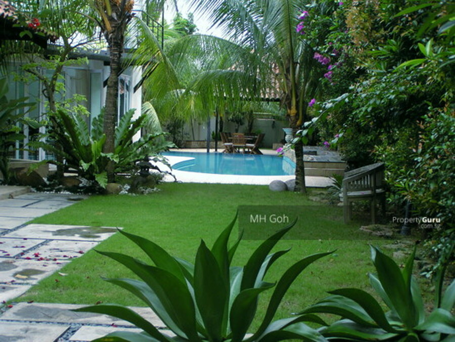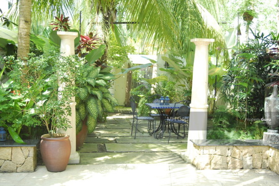 - Tropical Balinese style landscape with mature garden facing lush greenery.