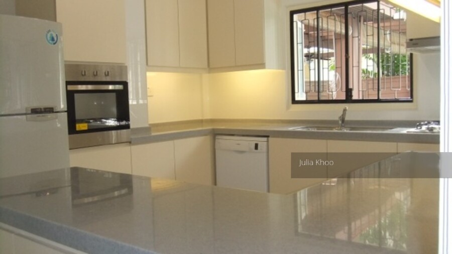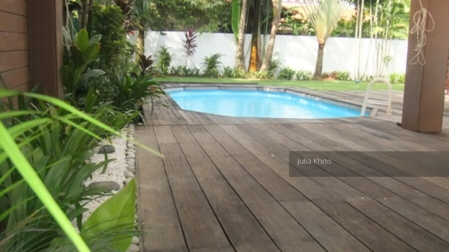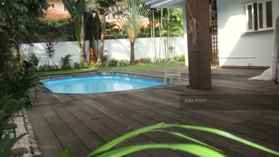 2 storey Bungalow @ 17 Sunset Drive for Rent. Cosy charming home with in-ground pool, lovely patio with greenery garden, very quiet, near park, new kitchen, baths, master and kids bedroom with balcony. 4+1 maid'w room, family and dining.