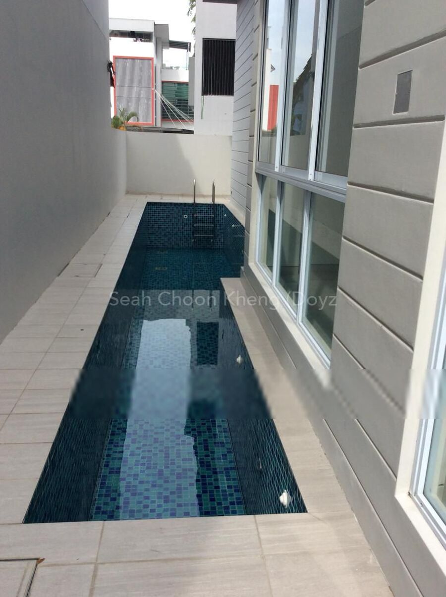 There are 2 units of semi detached houses on sale at 13 and 15 Meng Suan Road, off Upper Thomson Road. It is at a cul-de-sac Road which provides more privacy and parking space. Both houses are 3 storey high with 4 ensuite bedrooms, basement, home lift and lap pool. The land/built up area are 2216/4654 and 2286/4725 sft respectively. They are also available for rental.